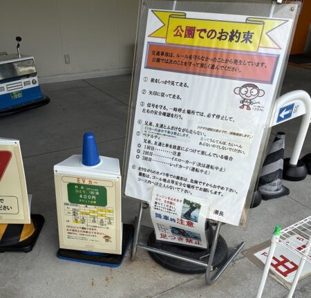 園内には実際の道路を模したコースが整備されて信号機や横断歩道や標識などが設置されています
